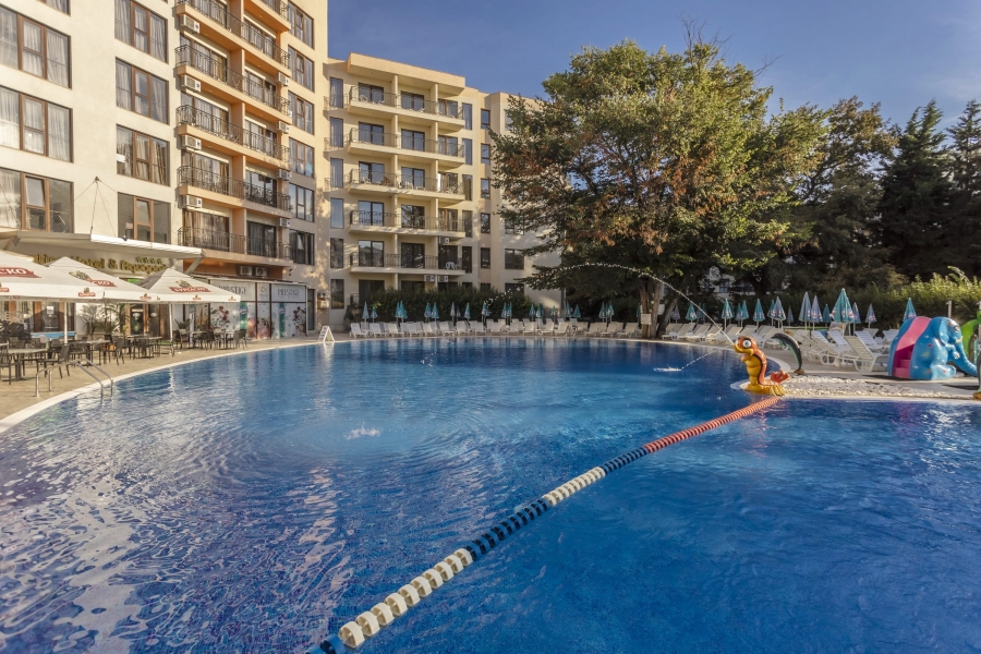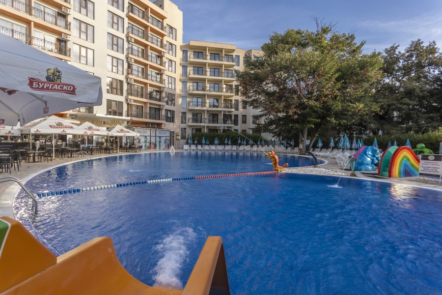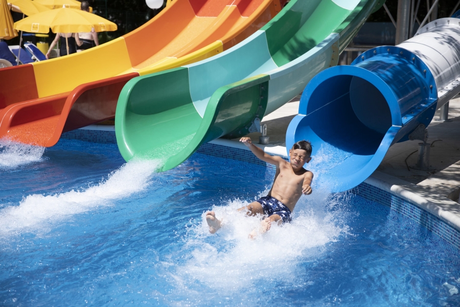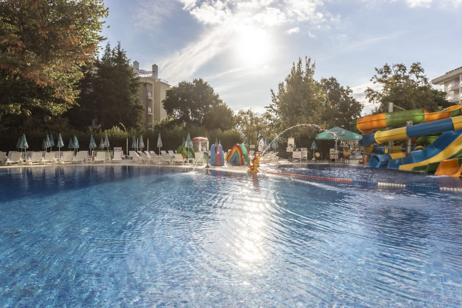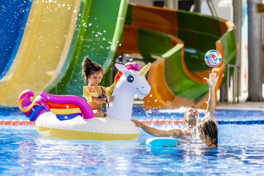 Мы не забыли нашего младшего гостя. В отеле также есть отдельный детский бассейн с водными горками для детей – рай красок, сказочных животных и персонажей.